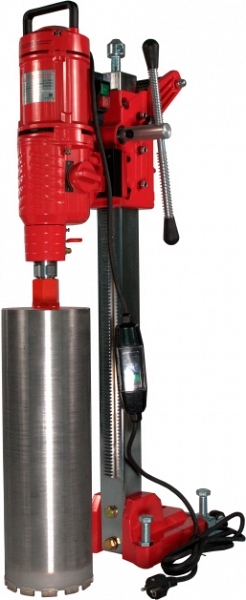 Алмазная сверлильная установка Voll V-Drill 300 (Волл В-Дрилл 300) с мощным двигателем 4,78 кВт предназначена для сверления отверстий Ø 15 – 300 мм в бетоне, железобетоне, включая железобетон с высокой степенью армированности, кирпичной и каменной кладке, граните, мраморе, под прямым углом, с подачей воды. Идеально подходит для строительных и монтажных организаций и фирм, занимающихся монтажом систем отопления, водоснабжения, вентиляции, кондиционирования, а также прокладкой электрических сетей, слаботочных систем. Благодаря компактной конструкции и относительно малому весу обеспечивается легкая транспортировка, а также монтаж и демонтаж установки на рабочем месте.