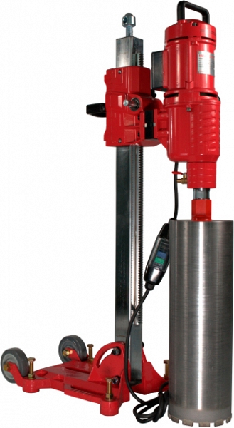 Алмазная сверлильная установка Voll V-Drill 300N (Волл В-Дрилл 300Н) с мощным двигателем 4,78 кВт предназначена для сверления отверстий Ø 15 – 300 мм в бетоне, железобетоне, включая железобетон с высокой степенью армированности, кирпичной и каменной кладке, граните, мраморе, под углом до 45°, с подачей воды. Оснащена стойкой с изменяемым углом наклона. Наклонная стойка позволяет производить сверление под углом, что дает дополнительные возможности при бурении. Идеально подходит для строительных и монтажных организаций и фирм, занимающихся монтажом систем отопления, водоснабжения, вентиляции, кондиционирования, а также прокладкой электрических сетей, слаботочных систем. Благодаря компактной конструкции и относительно малому весу обеспечивается легкая транспортировка, а также монтаж и демонтаж установки на рабочем месте.