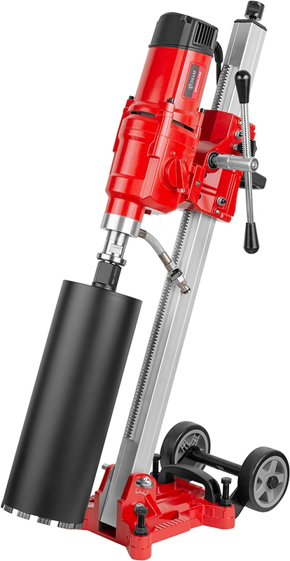 Бесщеточная установка для алмазного бурения Diam EX-300/2A-LC Brushless (Диам ЕХ-300/2А-ЛЦ Брашлесс) серии Extra Line предназначена для мокрого алмазного сверления отверстий Ø 20 – 260 мм в бетоне, железобетоне и Ø 20 – 300 мм в искусственном и натуральном камне, кирпиче, под углом до 45°, с подачей воды, в строительстве, при электромонтажных работах, прокладке сантехнических и вентиляционных труб, отбора проб грунта, высверливании проемов в стенах, а также для частного ремонта.