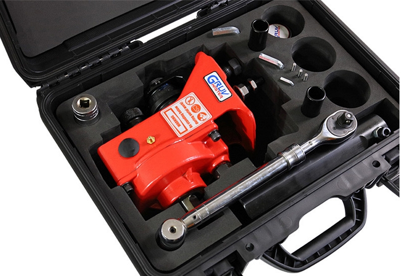 Комбинированный переносной ручной желобонакатчик Gruvmaster RG-3M (1 1/4-6) (ГрувМастер РГ-3М (1 1/4-6)) – ручное универсальное устройство для накатки желобков (канавок) на трубах грувлок толщиной стенки до 6 мм. Портативный станок применяется для монтажа трубопровода из углеродистых стальных труб, алюминиевых, оцинкованных и из нержавеющей стали Ø 1 1/4" – 4" sch. 10/40 и нержавеющих стальных трубах из нержавеющей стали Ø 5" – 6" sch. 10/20. Желобонакатчик подходит для выполнения небольших и среднеобъемных работ на строительной площадке при монтаже водопроводных, отопительных, пожарных спликерных и дренчерных систем, промышленных трубопроводов без применения сварки. Может работать, как энергонезависимо, без подключения к источнику питания, так и с подключением через привод к резьбонарезным станкам или электрическим клуппам.