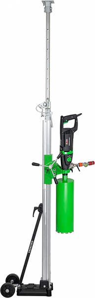 - Дрель или двигатель для алмазного сверления могут быть закреплены между полом и потолком с помощью телескопической треноги