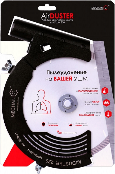 Преимущества защитного вытяжного пылеотводящего кожуха для ушм Mechanic AirDuster 230: